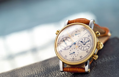 Der Chronograph ist, auch in seiner einfachsten Form, eine sehr vielseitige Uhr, mit der man die Zeitspanne der Ereignisse einfach und bequem messen kann. Aber wenn ein Mechanismus mit Split-Seconds, bekannt als "rattrapante" auf Französisch, eingebaut wird, erhöht sich die Vielseitigkeit eines Chronographen erheblich. Zwei oder mehr Ereignisse mit der gleichen Startzeit aber unterschiedlicher Länge. zB Meisterschaftssprint, können gleichzeitig zeitlich festgelegt werden. Der Sekundenzeiger ist über einen komplexen Mechanismus mit dem Chronographen verbunden. Mit einem speziell entwickelten Drücker kann der Sekundenzeiger so oft wie nötig gestoppt und wieder in Synchronität mit dem noch laufenden Chronographen gebracht werden.